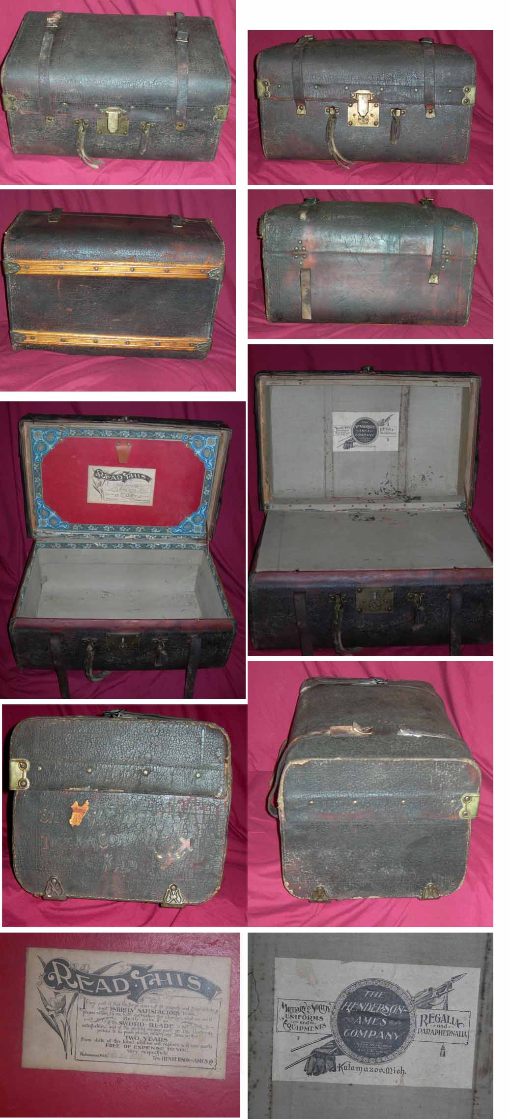 SMALL LEATHER TRUNK HENDERSON AMES FRATERNAL MILITARY