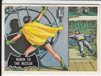 Title (ebay affiliate link): 1966 Topps 'Batman' #20 'Robin To The Rescue' (Black Bat)