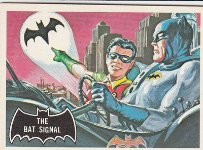Title (ebay affiliate link): 1966 Topps 'Batman' #3 'The Bat Signal' (Black Bat)