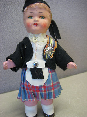 Title (ebay affiliate link): Vintage Germany German Wind Up Paper Mache Doll Scottish Kilt Boy Bagpipe Paint