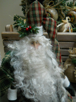 Title (ebay affiliate link): Primitive Folk Art Christmas Olde Tyme Santa Christmas Plaid Home Spun