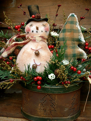 VINTAGE PUNCH TIN BASKET~SNOWMAN~TREE~PRIM
