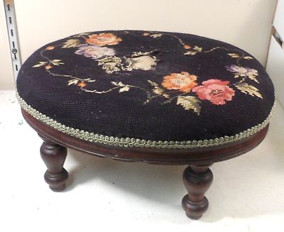 Small Antique Foot Stool Needlepoint? Dark Wood
