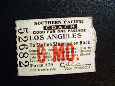 Title (ebay affiliate link): Southern Pacific Coach Los Angeles to Glendale Ticket 1952