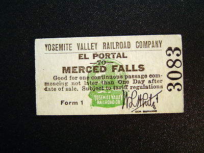 Title (ebay affiliate link): Yosemite Valley Railroad Co. El Portal to Merced Falls Ticket 1930s