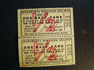 Title (ebay affiliate link): Sacramento Northern Railway Childrens Fare Roundtrip Ticket 1940s
