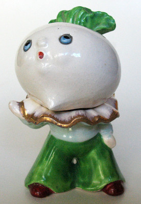 Title (ebay affiliate link): 2 piece Figural Salt and Pepper Shaker Set Ceramic, 1930s-40s, cute TURNIP CLOWN