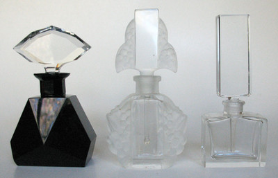 Title (ebay affiliate link): Lot of 3 Vintage Glass PERFUME BOTTLES with stoppers - 1920s-1940s - great cond!