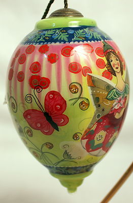 Ne" Qwa Mouth Blown Hand Painted Signed Art Glass Ornament Angel Design