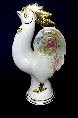 BEAUTIFUL VINTAGE 12" TALL PORCELAIN ROOSTER ~ FLORAL FEATHERS