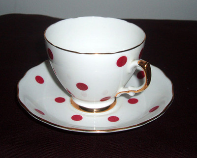 RED Polka Dot Bone China Tea Cup & Saucer - Royal Vale England