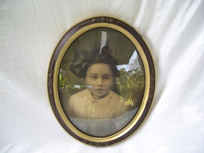 Title (ebay affiliate link): Antique Wood Frame Bubble Glass & Hand Colored-(?) Girl Portrait Convex Shape