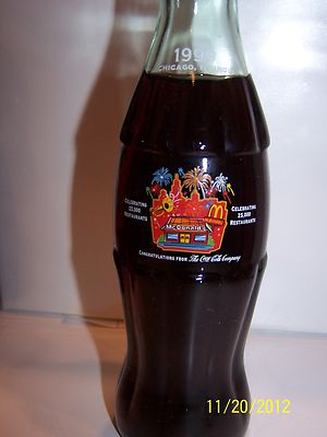 Title (ebay affiliate link): MCDONALD'S CELEBRATING 25,000 RESTAURANTS COCA COLA BOTTLE