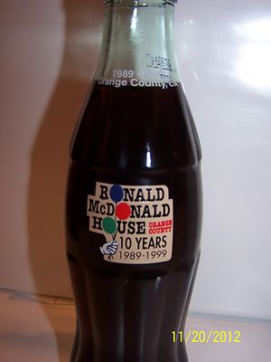 Title (ebay affiliate link): RONALD MCDONALD HOUSE ORANGE COUNTY CA. 10 YRS. COCA COLA BOTTLE