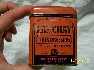 Title (ebay affiliate link): RARE VINTAGE NICE LA-CHAY BLACK AMERICANA HAIR DRESSING TIN DIXIE ATLANTA SOUTH