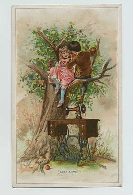Title (ebay affiliate link): 1800's Singer Sewing Machine Litho Adv Trade Card Children Tree Adam & Eve cx803