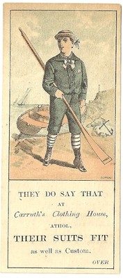 c 1890 Bookmark Bufford Trade Card CARRUTH CLOTHING HOUSE ATHOL MA
