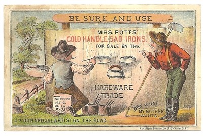 Title (ebay affiliate link): c 1890 MRS POTTS' COLD HANDLE SAD IRON Stichter & Son READING Trade Card