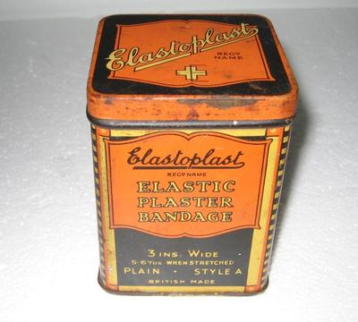 Title (ebay affiliate link): Early Version ELASTOPLAST BANDAGE BAND AID First Aid TIN England