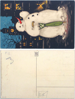 Title (ebay affiliate link): Vintage PC, happy new year with snowman with umbrella, Sign FB