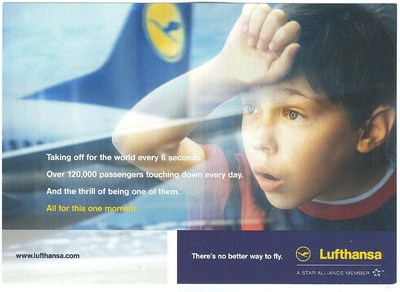 AIRLINE ISSUE POSTCARD - LUFTHANSA ADVERTISEMENT - LITTLE BOY & BOEING 737