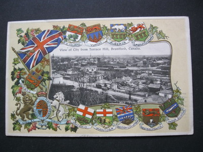 Title (ebay affiliate link): CANADIAN CRESTS AND FLAG WITH BRANTFORD 1906 OLD POSTCARD (#34)