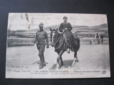Title (ebay affiliate link): WW1 AMERICAN SOLDIER OFFERS LADY COURTESY HORSE RIDE 1918 OLD POSTCARD (#174)