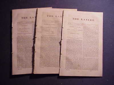 Title (ebay affiliate link): 1826 THREE ISSUES OF THE LANCET LONDON MEDICAL JOURNAL