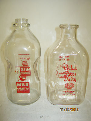 Title (ebay affiliate link): 2 Vintage 1/2 Gallon Cedar Falls Iowa & Carnation Dairy Clear Glass Milk Bottle
