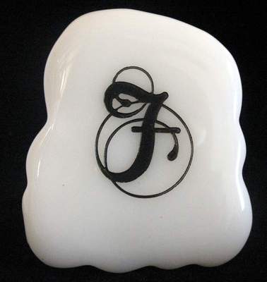 FENTON White Milk Glass Slab Rock Paperweight Sign Black Logo ~ Mint! ~ NR!