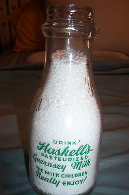 Title (ebay affiliate link): HASKELL'S PINT MILK BOTTLE, AUGUSTA, GA . GREEN PRYO & EMBOSSED GLASS