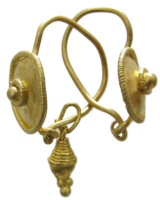 Title (ebay affiliate link): GOLD ROMAN EARRINGS with PENDANTS 15/26MM 5.50G R-313