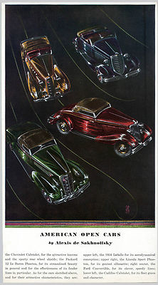 1934 Alexis de Sakhnoffsky Pierce Arrow, Plymouth, Packard, LaSalle, Ford Chevy