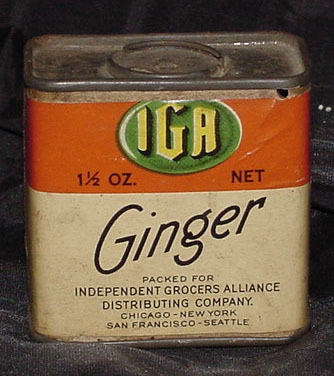 2/1919 IGA GINGER TIN, USED