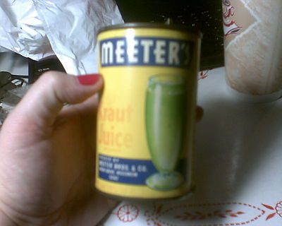 Music box-vintage can of Meeter's Kraut Juice plays music marked REUGE