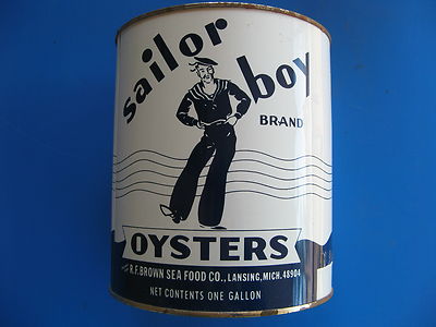 Title (ebay affiliate link): SAILOR BOY BRAND OYSTER TIN, R. F. BROWN SEAFOOD, LANSING, MICHIGAN