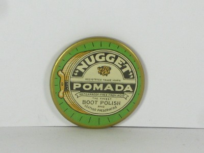 Old Antique Tin Advertizing Hand Mirror Nugget Boot Polish
