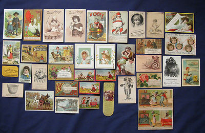 Title (ebay affiliate link): LARGE LOT OF 36 1800s ORIGINAL ADVERTISING TRADE CARDS - MANY WITH FLAWS