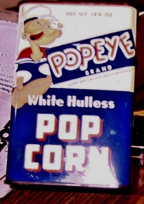 SCARCE Pop Eye Brand White Hulless Pop Corn Tin