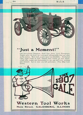 Title (ebay affiliate link): 1907 Gale Runabout Car Ad, GALESBURG, ILLINOIS, WHY PAY MORE ?