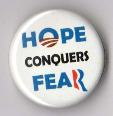 Barack Obama campaign button pin 2012 Hope conquers Fear