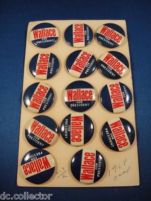 Title (ebay affiliate link): DEALER LOT-14 1" GEORGE WALLACE FOR PRESIDENT IAL CELLULOID PINS PINBACK BUTTONS