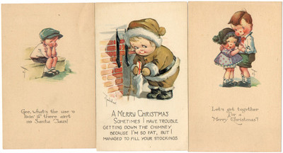 Title (ebay affiliate link): 3 A/S CHARLES TWELVETREES CUTE KIDS CHRISTMAS Vint. Postcards SANTA'S HELPER