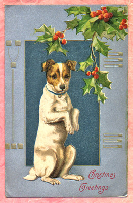 Title (ebay affiliate link): JACK RUSSELL TERRIER CHRISTMAS PUPPY DOG Art Deco Border WINSCH Holly POSTCARD