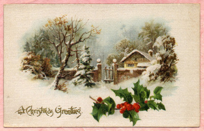 Title (ebay affiliate link): BEAUTIFUL WINSCH ALL "SILK" CHRISTMAS SCENIC HOUSE IN COUNTRY POSTCARD Lovely!