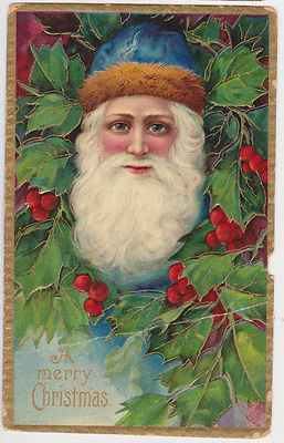 Title (ebay affiliate link): Embossed Christmas Postcard - Santa in a Blue Hat - Series 1480