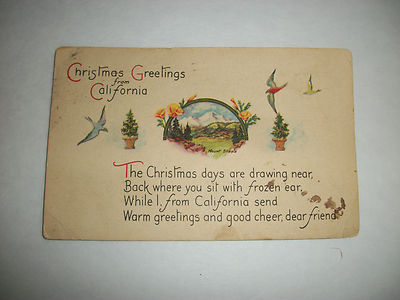 Title (ebay affiliate link): Vintage postcard Christmas greeting from California birds poppies Mt Shasta