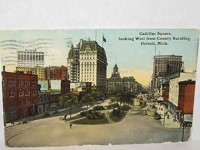 Title (ebay affiliate link): 1941 POSTCARD " CADILLAC SQUARE W. FROM COUNTY BLDG " ( W/ SHOPS ) DETROIT MI