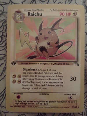 Title (ebay affiliate link): Raichu 1st Edition Rare Pokemon Card Fossil 29/62