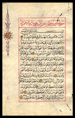 Title (ebay affiliate link): 1804 Illuminated Ottoman Koran Leaf Lot (3) Border Medallions & Sura Istanbul
